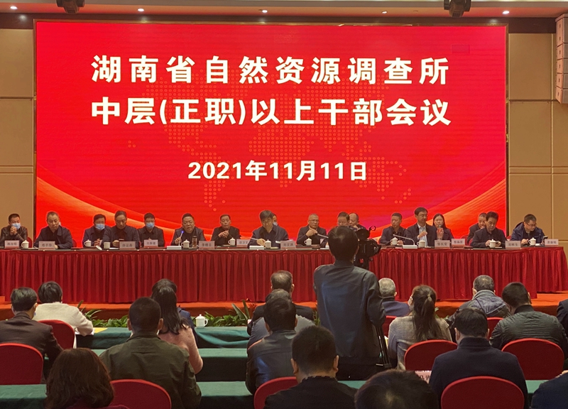 11月11日上午,湖南省自然资源调查所中层以上干部会议在娄底召开,省地质院党委副书记刘汉洪出席会议并讲话,省地质院组织人事部胡世明处长宣读了院党委关于湖南省自然资源调查所领导班子任职决定,湖南省自然资源调查所党政负责人作表态发言,418队和407队中层(正职)以上干部97人参加会议。