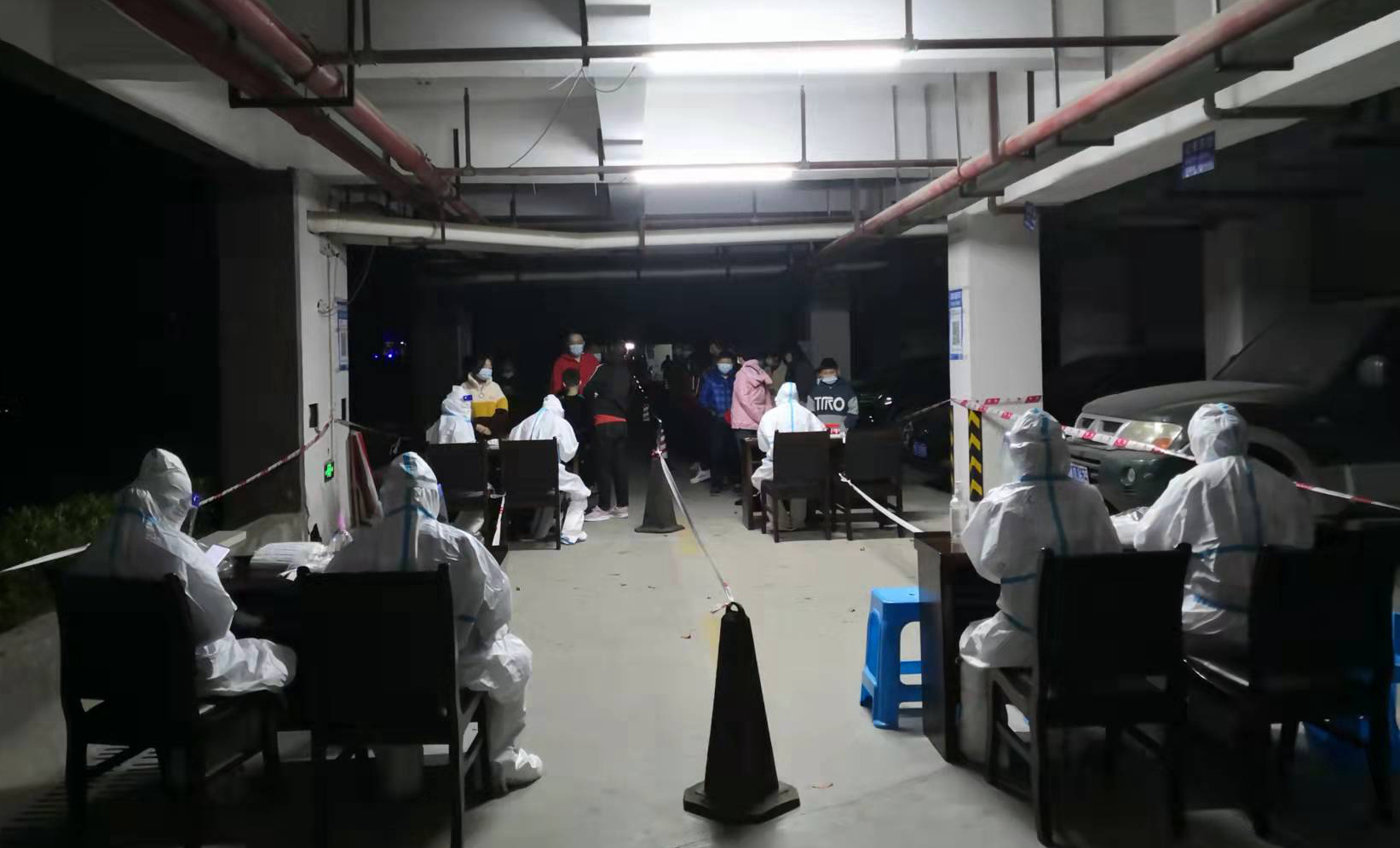 清晨5点半,医护人员和志愿者就位,开展第二轮核酸检测