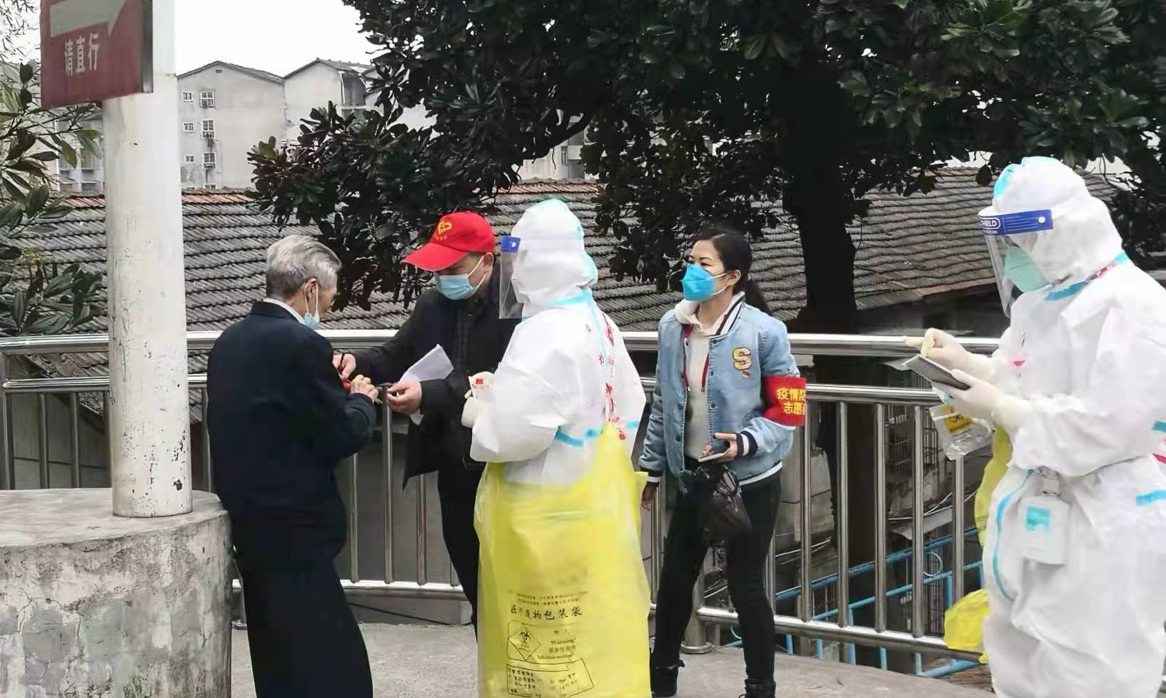 小红帽志愿者积极出动,对住宅区逐户排查,并协助社区做好核酸采样等各项工作
