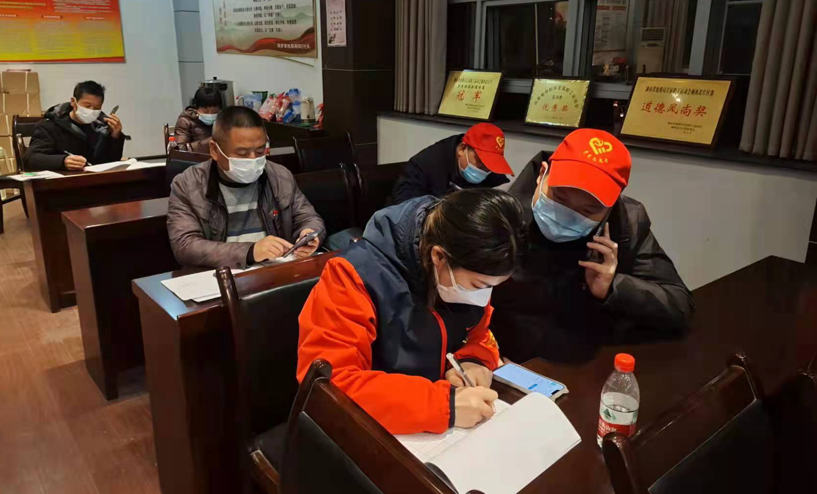 3月19日志愿者们仅休息了3个小时,20日又坚守了一天,晚饭后继续开展第二轮摸排