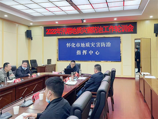 5月17日上午, 怀化市2022年汛期地质灾害防治工作轮训会在市地质灾害防治指挥中心召开。会议由怀化市自然资源和规划局主办,按市、县、乡镇三级分别组织开展。本次市级轮训以视频会议形式举行,各县市区局设分会场,各县市区自然资源局分管领导、地勘股长、地灾防治业务骨干、乡镇分管领导、自然资源所所长及常驻技术支撑人员共计650余人参会。市自然资源和规划局二级调研员邓光荣到会指导。