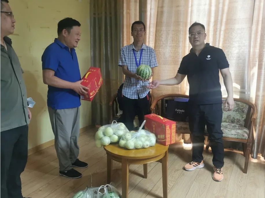 8月15日,资源所副所长曹进良、常锦华带队,冒酷暑到溆浦县谭家湾矿区合家冲矿段硅砂矿详查工地和溆浦县1:1万地灾调查工地看望慰问冒高温作业的一线职工,为他们送上防暑药品、解热水果及凉茶等防暑物资,对他们不畏高温、坚守岗位的劳动精神表示赞扬和感谢,同时嘱咐他们注意劳逸结合,在工作过程中做好个人防护。