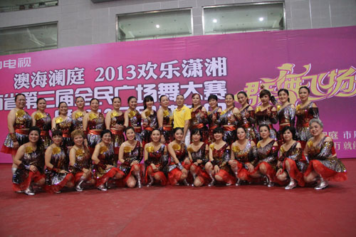 6月2日下午,湖南省精神文明建设指导委员会办公室主办的“澳海澜庭2013欢乐潇湘湖南省第三届全民广场舞‘群舞飞扬’怀化赛区”海选在怀化市体育中心拉开帷幕,我队编排的广场舞《辣椒,辣椒》参加了比赛。30人组成的407队“地勘之花”代表队,其中有70多岁的老奶奶,也有20出头的小姑娘。随着激情的音乐,“地勘之花”踏着欢快活泼的舞步,尽显地质人的风采,赢得了观众阵阵掌声。评委们交口称赞代表队精神状态非常好,表现力非常强,是真正的全民健身队伍。