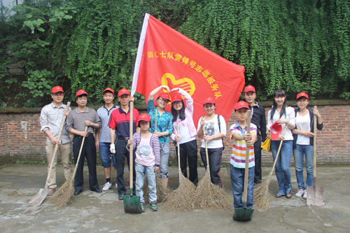 9月8日上午,我队近20位头戴小红帽的“雷锋号”志愿者,其中有六十岁的老人,有二、三十岁的年轻人,还有十来岁的孩子,他们高举鲜红的志愿者旗帜,手拿扫帚、铁铲、垃圾桶、塑料袋等劳动工具,与怀化义工、老年志愿者们为芷江路的人行道及旁边的小巷子进行彻底“美容”, 以实际行动为怀化市“创国卫”活动添光彩、做贡献。