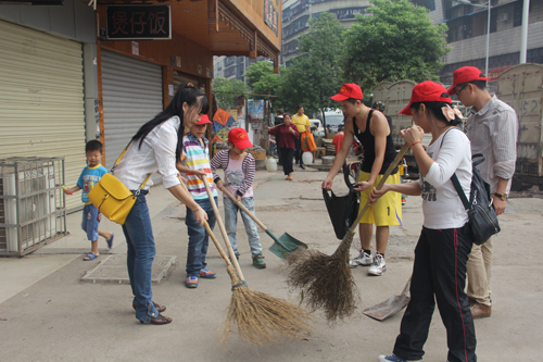 此次活动除了把人行道、花坛内的垃圾清扫干净,志愿者们还担任了环保宣传大使,对于门面前垃圾比较多的店主进行了环保的宣传与劝导。