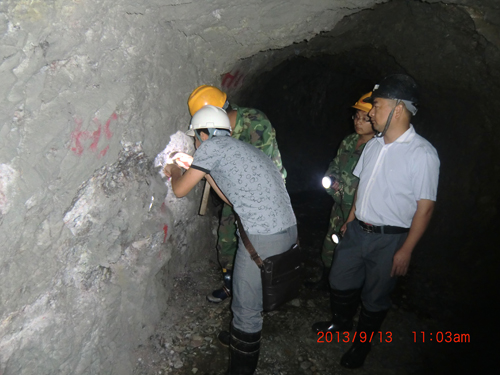 安全检查人员、团委委员首先来到青山洞矿区对洞探工程进行检查。经过近两个小时的洞内检查,结果表明该洞子支护、通风良好,安全措施到位。对顶板与洞壁的连接处的少量松动石块,现场进行了清除。检查过程中,陈德功详细讲解了在洞探作业过程中的各类安全知识,如作业人员进洞前要体检、禁止单人进洞作业、穿戴好安全装备、掉落的电线严禁触碰、时刻注意矿车、洞内岩石的稳固、岩石渗水情况、雷管和炸药的运输、保管及使用安全等,增强了大家的洞探安全和自我保护意识。
