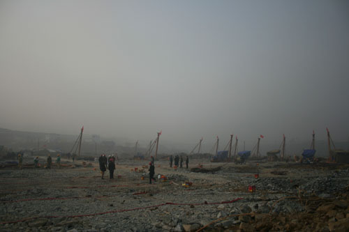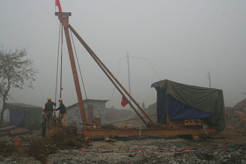 9点58分,随着队长曹进良的一声“开工”令下,在隆隆的机器轰鸣声中,20多台大型机械冲击成孔灌注桩机同时破土动工。