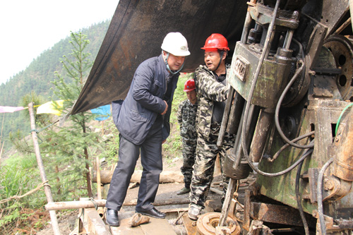 在经过野外道路的颠簸到达项目组驻地之后,陈学林副组长和项目组负责同志亲切握手,顾不上旅途的劳累,没有休息就和项目组负责同志一起沿着山路步行数里地,汗流浃背地来到钻机机台,看望慰问辛勤工作的工人。在了解了一线职工的工作生活情况后,陈副组长询问到是否了解我队现在正在开展的教育实践活动?职工们高兴地直点头,并夸赞此次活动搞的好。督导组其他成员还征集了一线职工对领导班子及班子成员以及此次教育实践活动的意见建议。