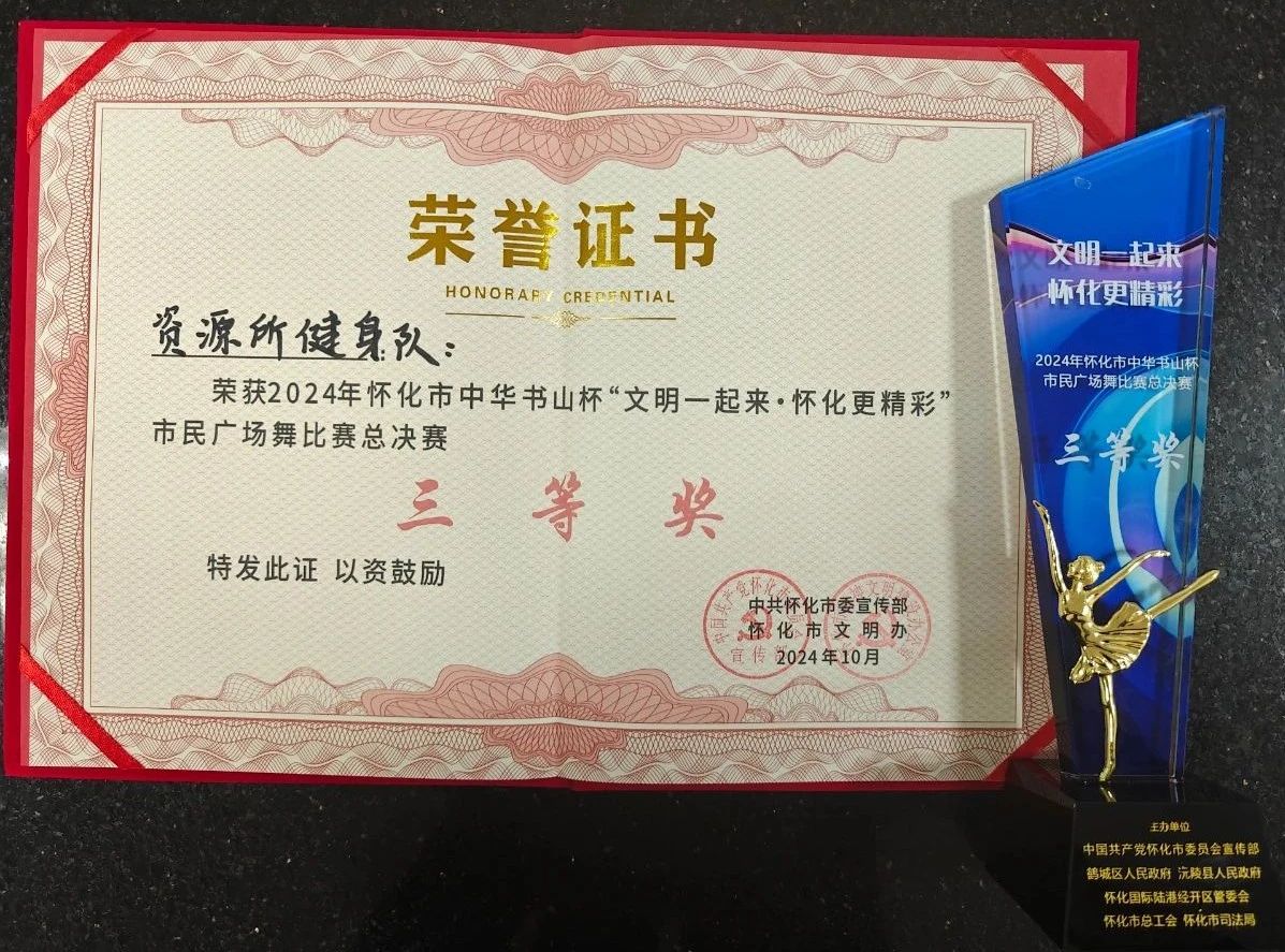 近日,历时五个月的2024年怀化市中华书山杯“文明一起来·怀化更精彩”市民广场舞比赛总决赛圆满落幕。资源所健身队代表芷江路社区参赛,凭借出色的表现脱颖而出,荣获总决赛三等奖。